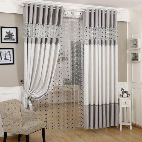 ผ้าม่านสีเงินตัดครีมอ่อน