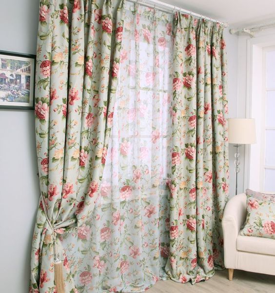 ผ้าม่านวินเทจ พื้นสีเขียว