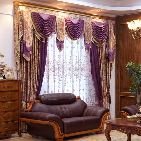 ผ้าม่านหลุยส์ สีม่วงตัดทอง