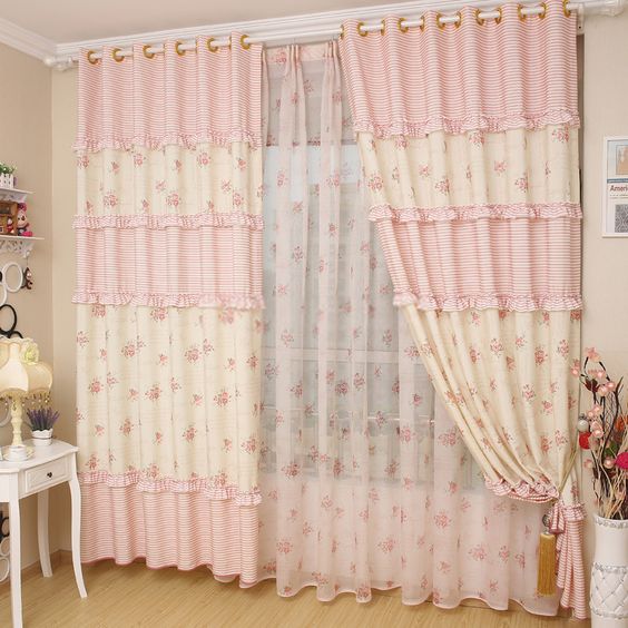 ผ้าม่านหวานแหวว สีชมพูและครีม แนววินเทจ