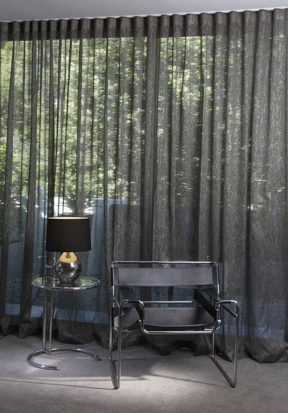 ผ้าม่านโปร่งสีเทาเข้ม