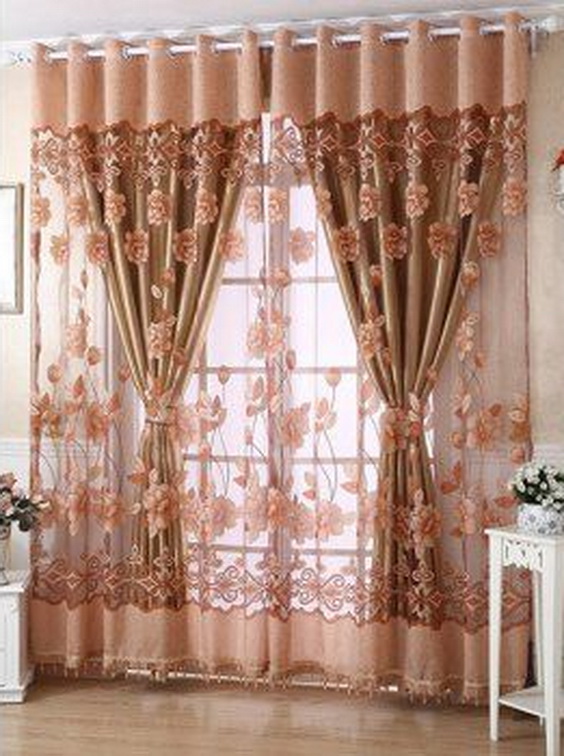 ผ้าโปร่งลายปัก สีโอรสเข้ม