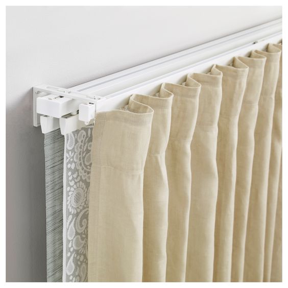 รางไมโคร ผ้าม่านสีครีม ผ้าม่านโปร่ง