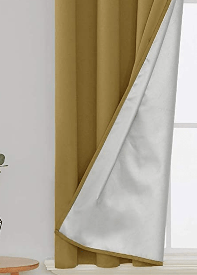 ผ้าฉาบปรอท (หรือ ผ้าซับม่านกัน UV 100%) ไว้ติดข้างหลังผ้าม่าน